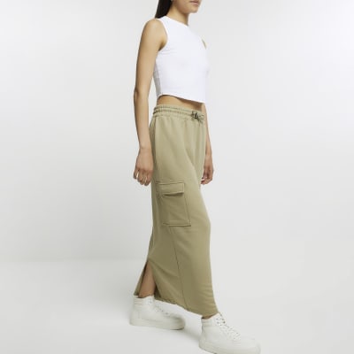 Khaki cargo maxi skirt River Island